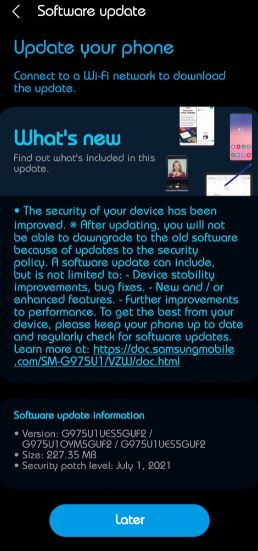 The 2021 July patch update is currently to the Verizon Galaxy Note20 5G, Galaxy Note20 ultra, Galaxy S10, and Galaxy S21 phones across the globe.