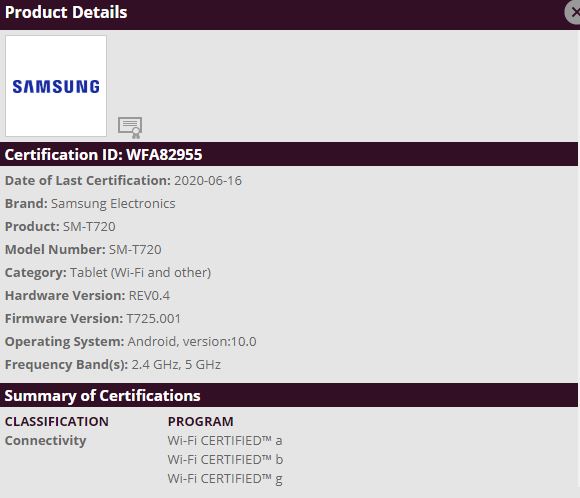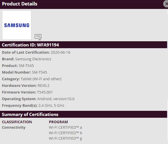 The Following models SM-T545, Sm-T547. SM-T547U and SM-T540 have appeared in the WFA listing. Similar to the Galaxy Tab A 8.0 (2018) these Samsung Tablet will get the Samsung One UI (2.0) based Android 10 update in August 2020.