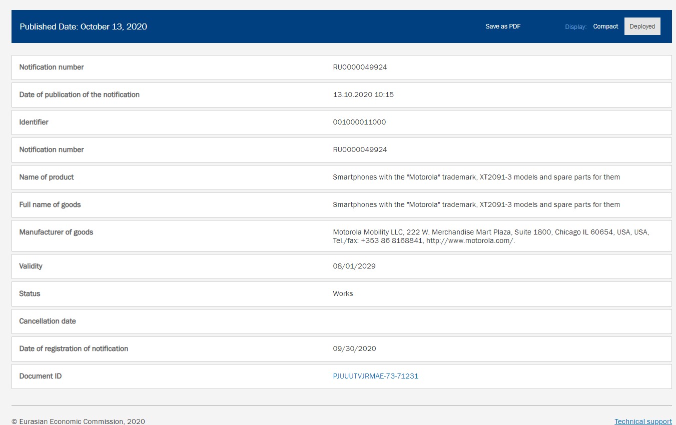 The New Motorola phone XT2091-3 has been certified in the EEC site no news about this phone will be known in the upcoming days. Motorola is working on the 5G budget phone codenamed “Kiev” XT2113-2 and XT2113-3 will come with the Android 10 os and Qualcomm Snapdragon 690 soc. Another Moto model XT2095-1 has certified in the FCC site.