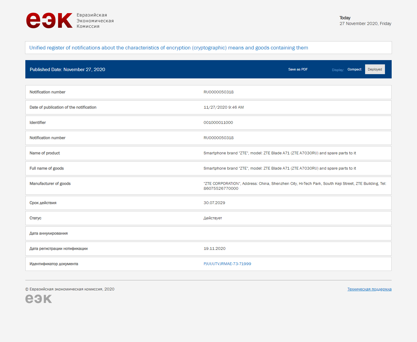 The ZTE Blade A71 bearing the model number ZTE A7030RU has cleared the EEC site and another model ZTE Blade A51 spotted in the WFA site with the Android 10 Os. The ZTE Blade 20 Pro 5G higher model of ZTE blade 20 5G is going to launch in China on November 30.